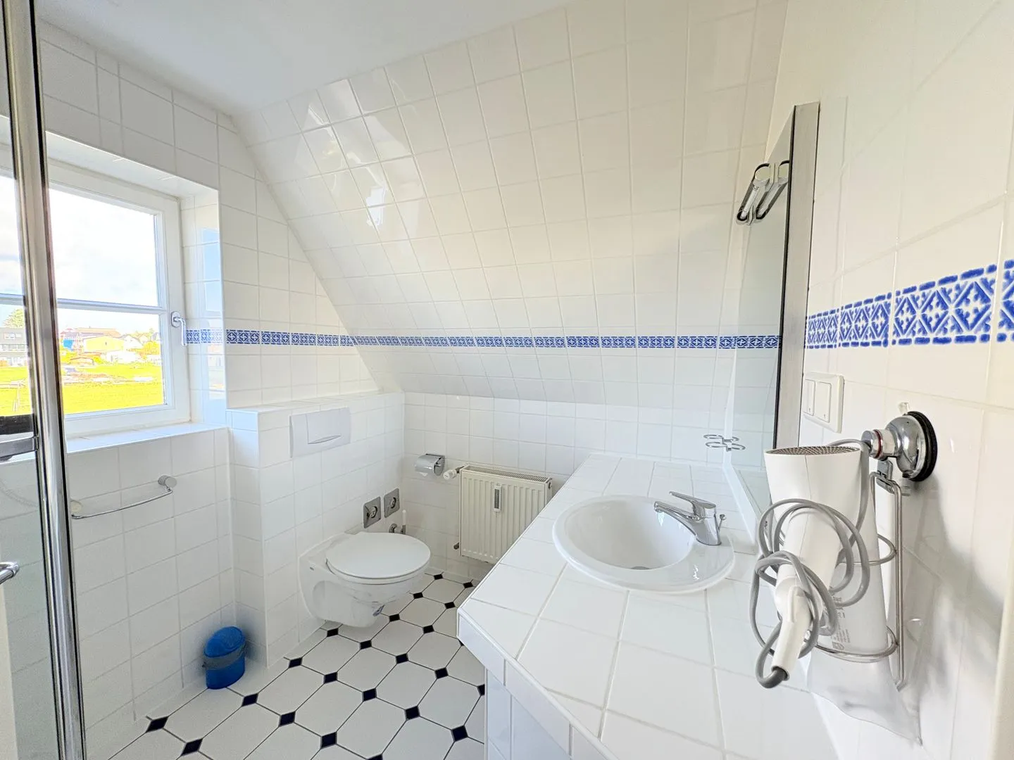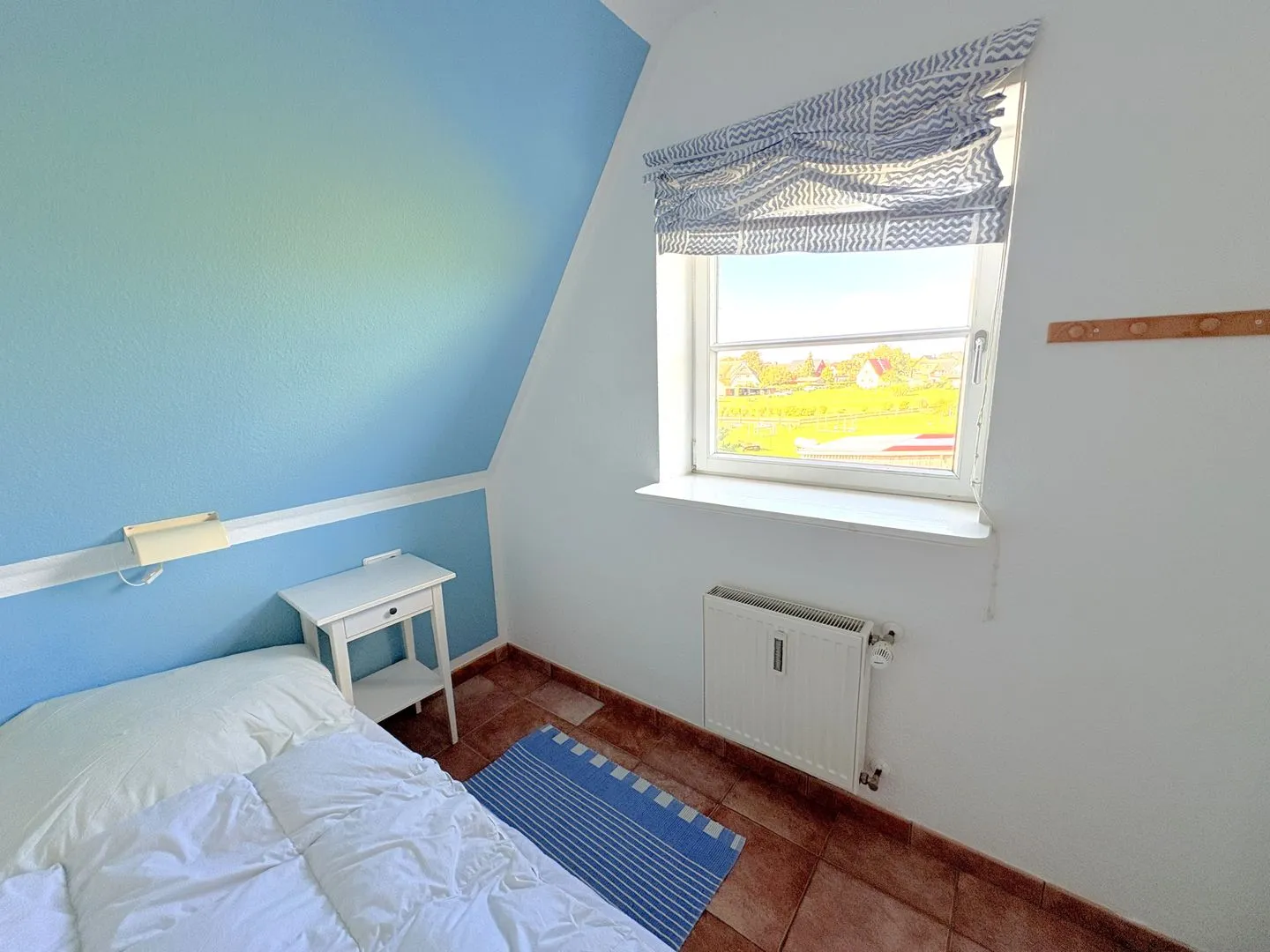 Selbstverständlich bietet auch das Apartment Drachen, selbst im süßen, maritimen blau-weiß gestaltet, einen wunderbaren Blick auf Wasser.