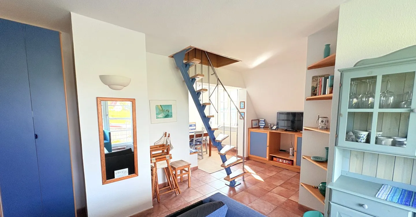 Das Apartment verfügt über drei Zimmer auf 65 m² und zwei Etagen.