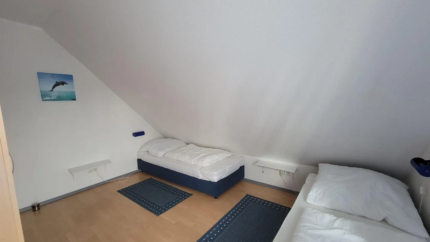 Über eine Treppe gelangen Sie in die Maisonette, wo sich zwei gemütliche Schlafzimmer befinden. Die beiden Schlafzimmer verfügen jeweils über zwei Einzelbetten.