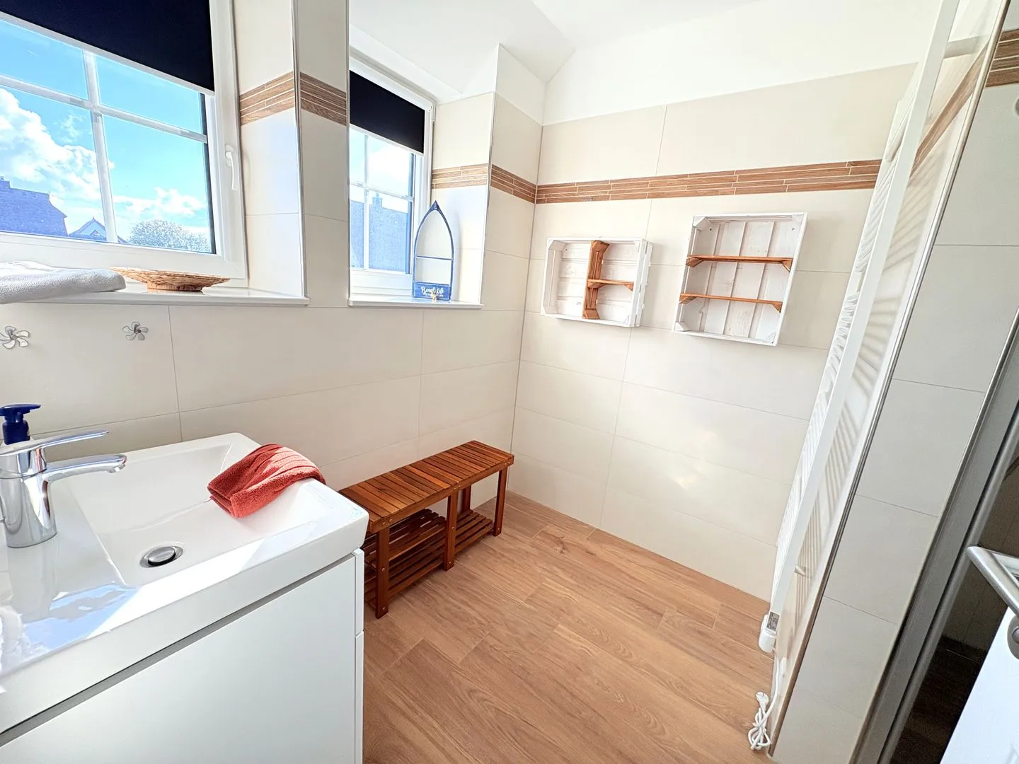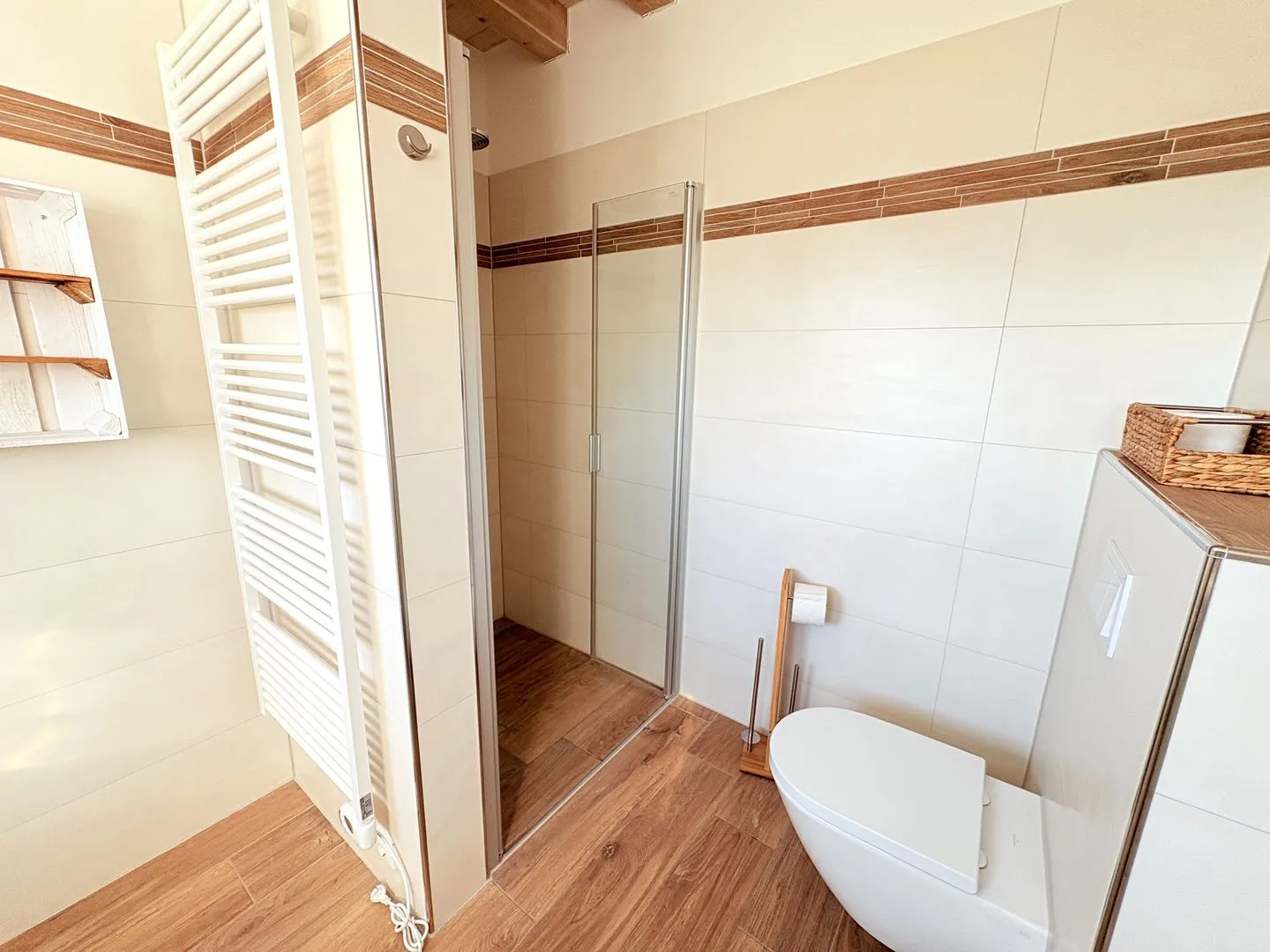1 modernes Badezimmer mit Dusche und zusätzlichem Gäste-WC