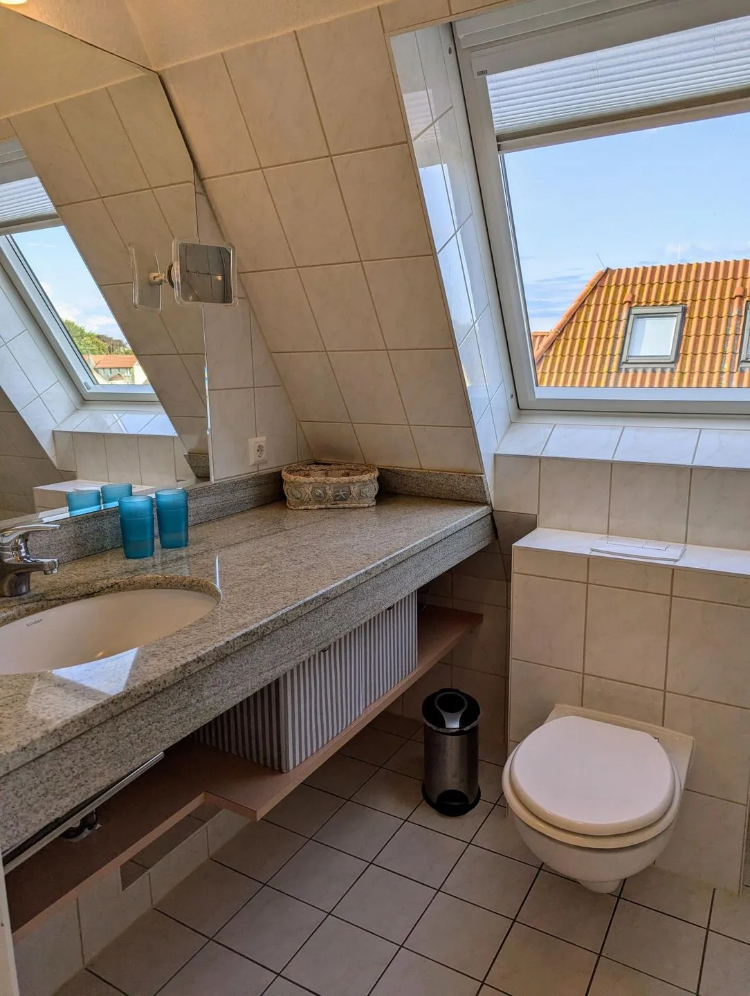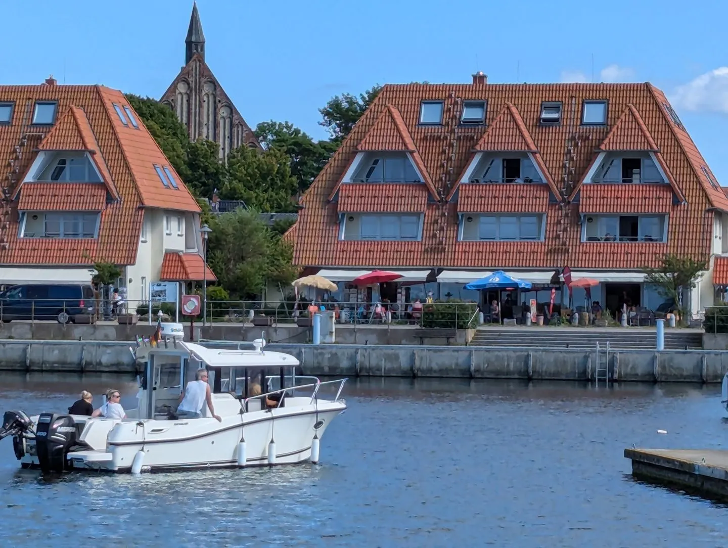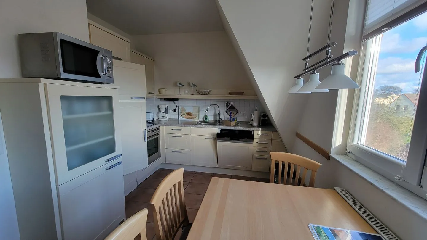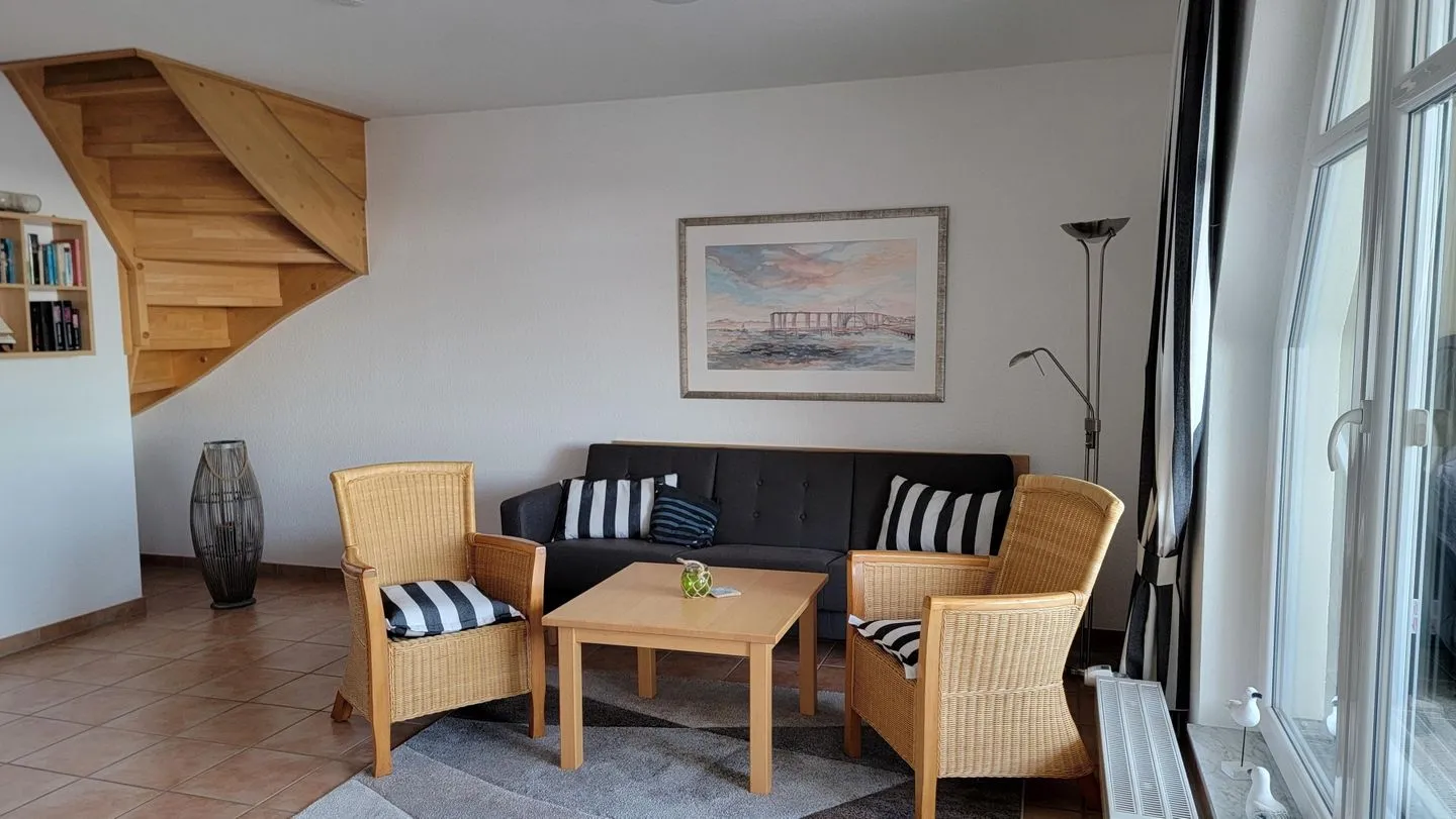 Die Wohnung punktet durch die Lage direkt am Wieker Yachthafen. Den Ausblick vom Balkon sowie die herrlichen Sonnenuntergänge haben wir sehr genossen.