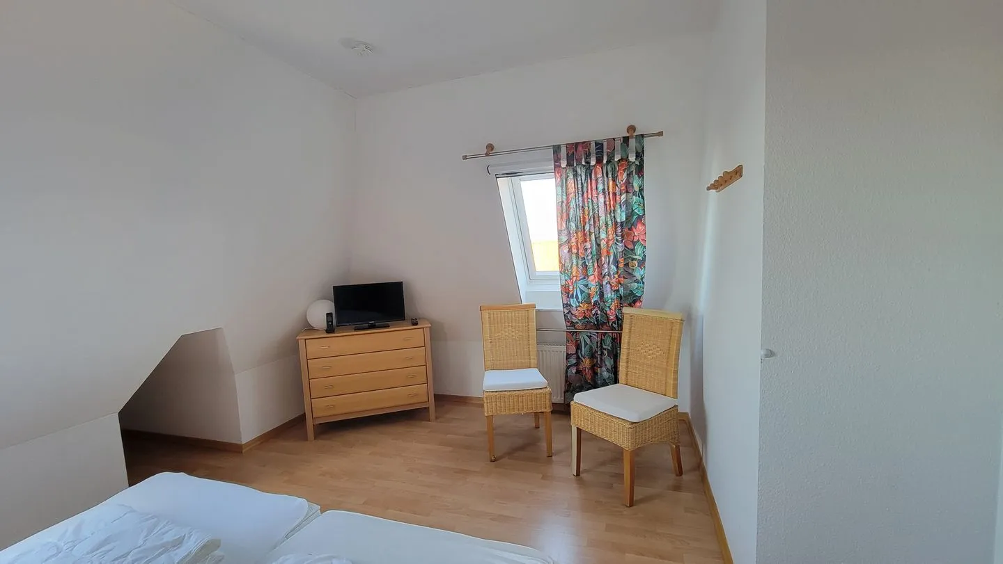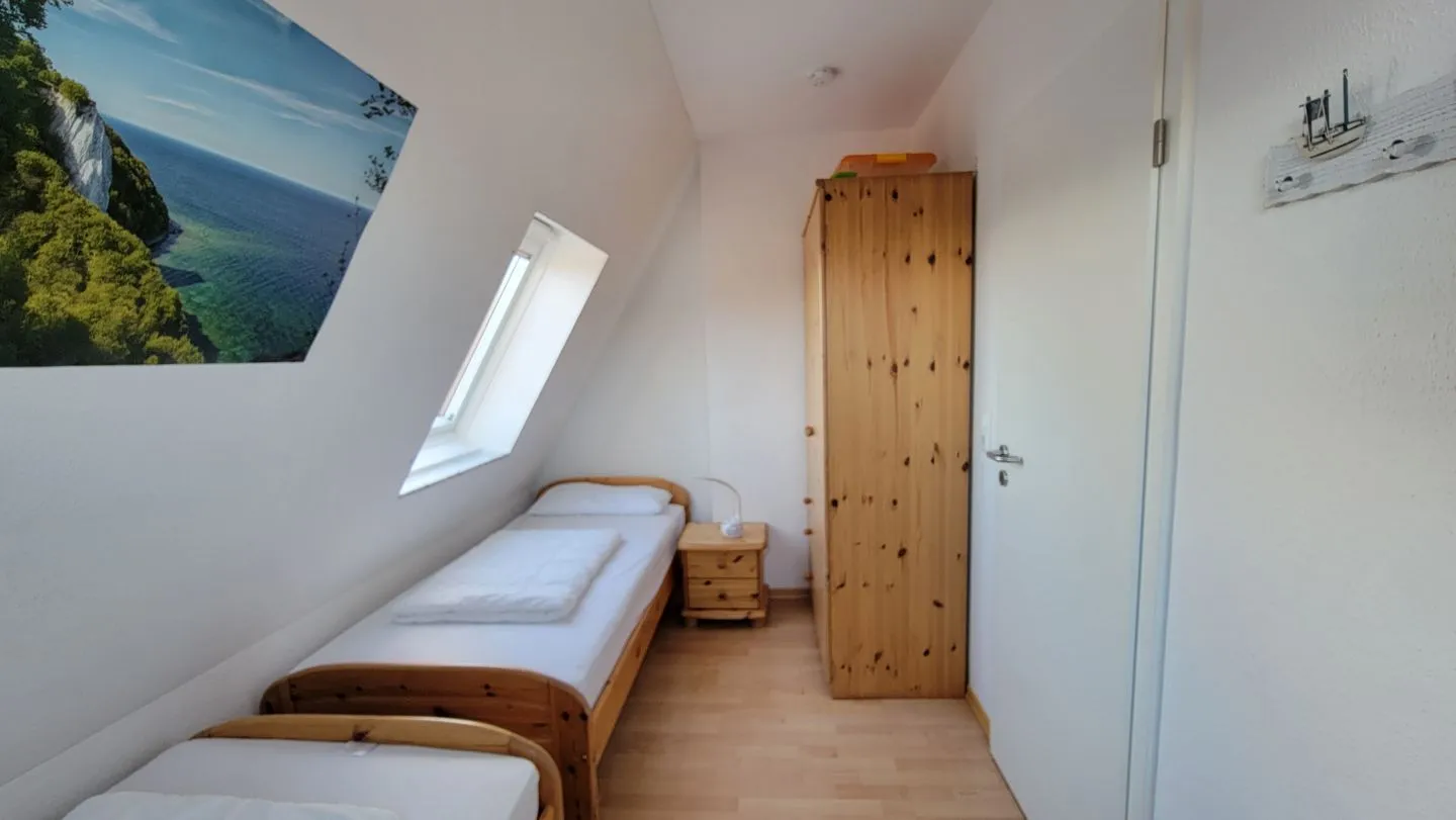 2 Einzelbetten, Kleiderschrank und zwei kleinen Kommoden eingerichtet