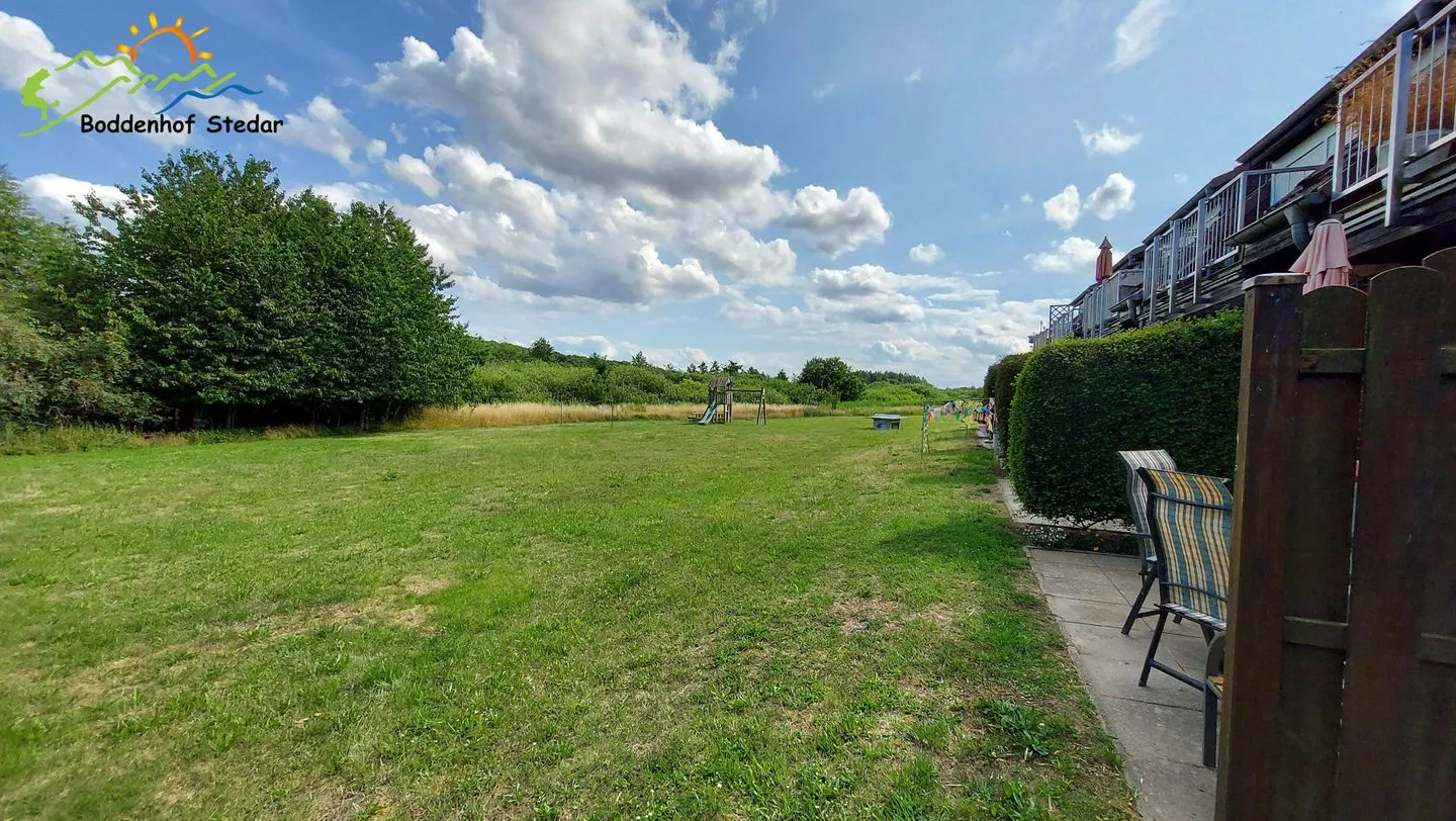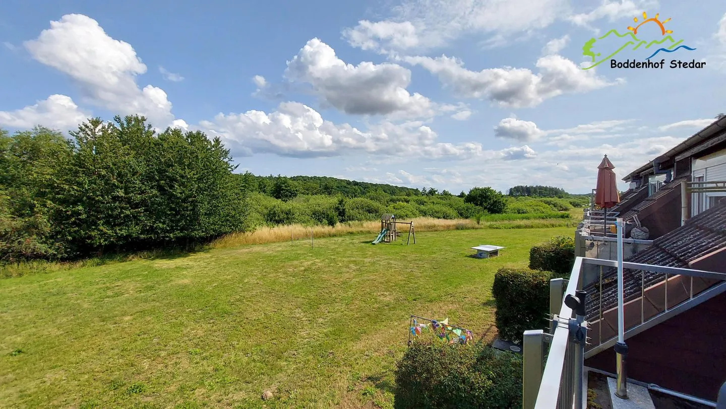Vom Wohnbereich aus gelangen Sie direkt auf Ihre eigene Terrasse mit freiem Blick auf die Außenanlage und den Spielplatz – ideal für Familien mit Kindern.