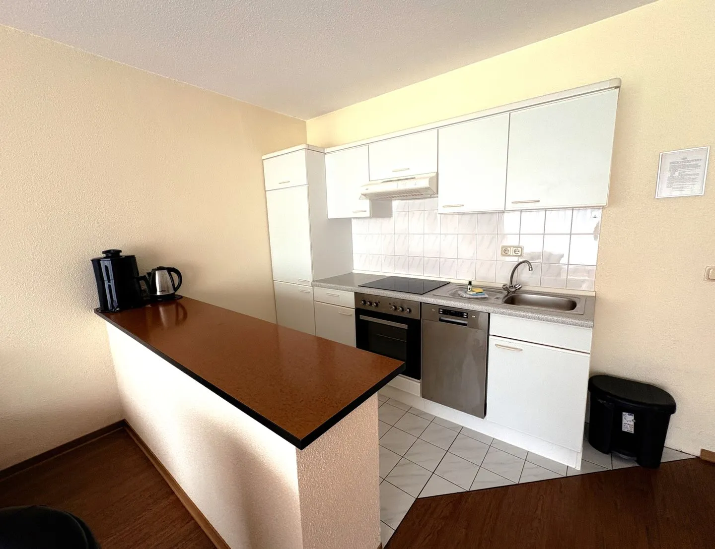 Eine integrierte Küchenzeile mit gemütlicher Essecke bietet alles, was Sie für eine unkomplizierte Selbstverpflegung benötigen.