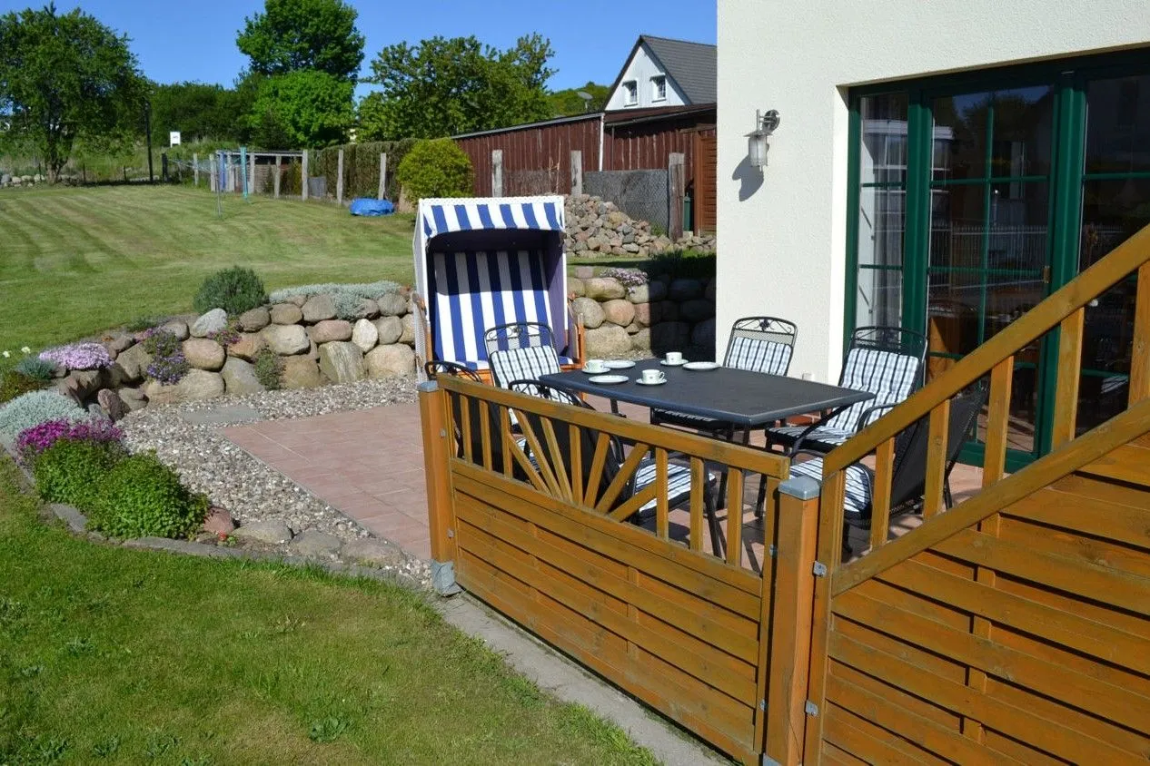 - Zugang zur 30 m² großen Terrasse mit Sonnenplätzen am Morgen, Nachmittag und Abend; mit Strandkorb, Tisch- und Sitzmöglichkeiten