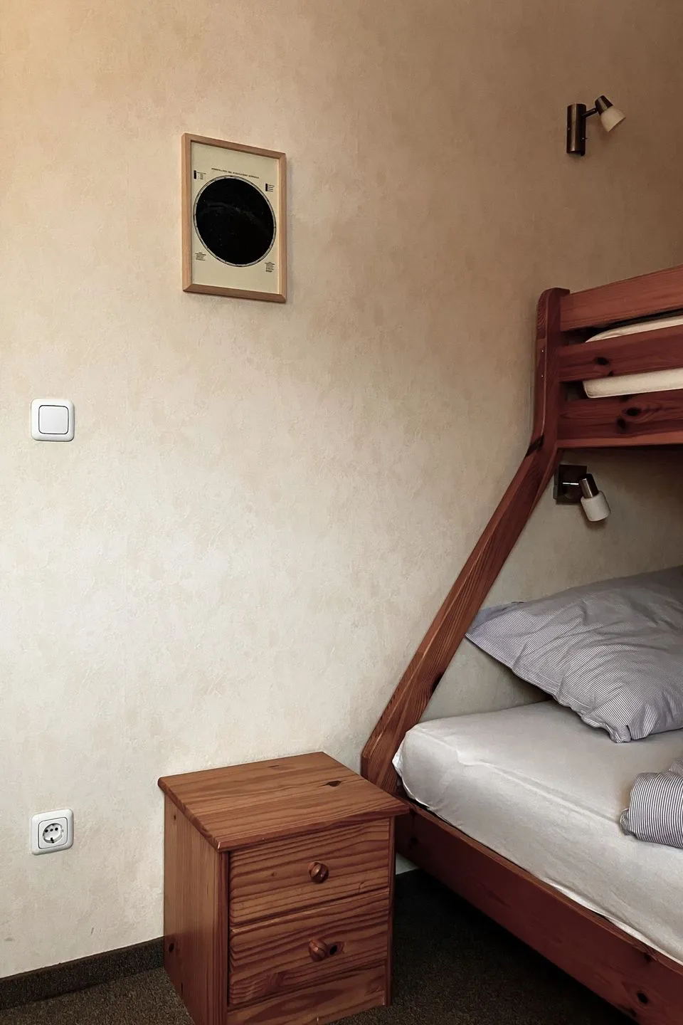 - Schlafzimmer mit Etagenbett: unten Doppelbett (1,40 × 2,00 m), oben Einzelbett (0,90 × 2,00 m)