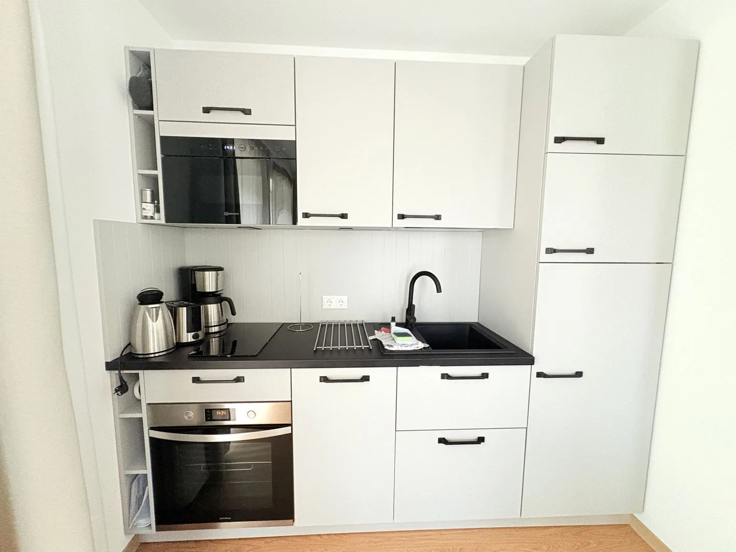 Küchenzeile mit Kühlschrank, Mikrowelle & Kaffeemaschine