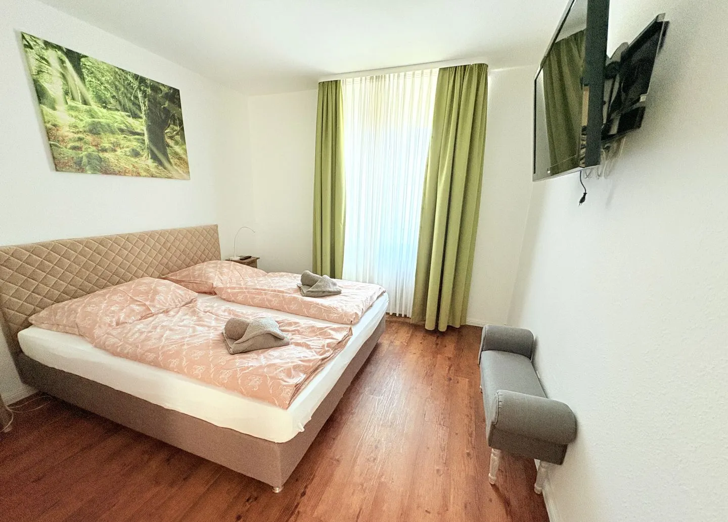 Die Wohnung verfügt über einen Balkon mit Seeblick, ein gemütliches Schlafzimmer, ein Wohnzimmer, einen Flachbild-TV, eine gut ausgestattete Küche mit Geschirrspüler und Mikrowelle sowie ein Badezimmer mit begehbarer Dusche. Gäste können ihre Mahlzeiten im Freien genießen und dabei den Blick auf die Stadt bewundern.